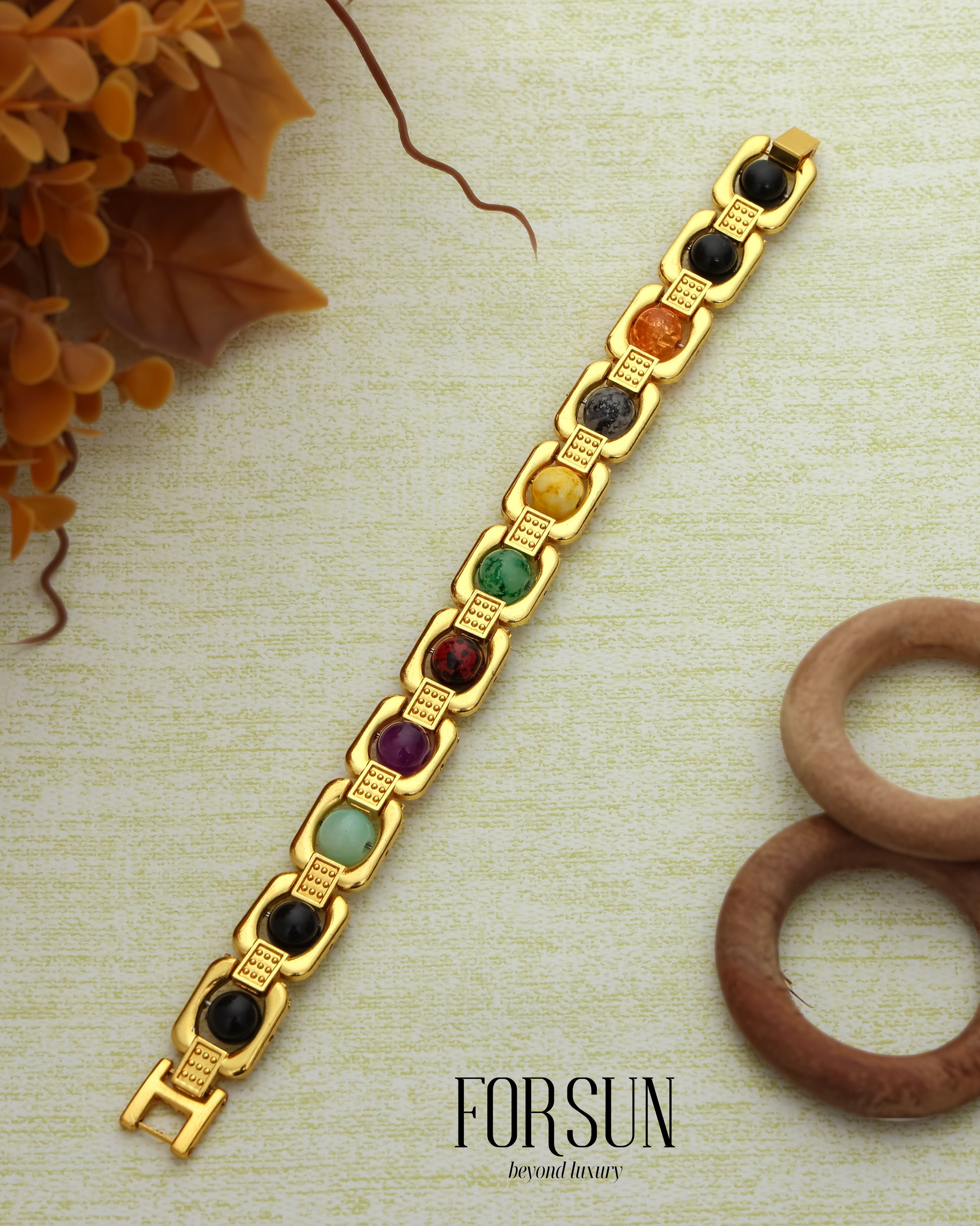 The seven-chakra bracelet is a symbolic accessory designed to align and balance the body's energy centers, known as chakras. Each bead on the bracelet represents one of the seven chakras, and wearing it is believed to promote spiritual and physical well-being. This bracelet serves as a constant reminder of the importance of inner harmony and self-awareness.